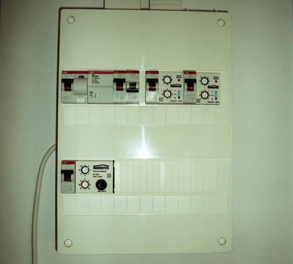 -Afin de faciliter l’installation électrique et la gestion domotique sous X10, j’ai posé un nouveau tableau électrique dans ce cellier.